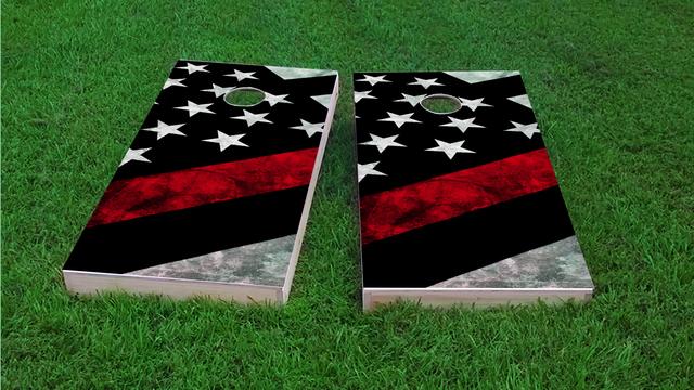 Red Line Firefighter Macro Themed Custom Cornhole Board Design Red Line Firefighter Macro Themed Custom Cornhole Board Design